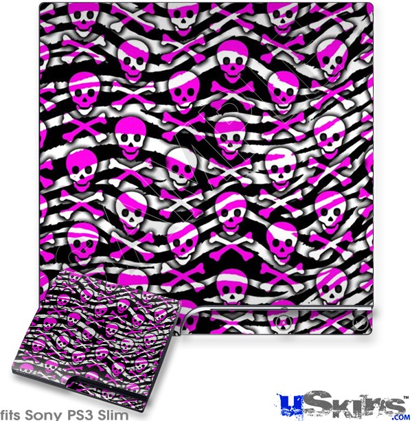 Decal Skin compatible with Sony PS3 Slim Zebra Pink Skulls