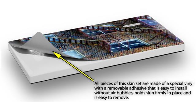 uSkins™ are self adhering vinyl skins that help prevent scratches and look great doing it. Unlike bulky silicon, plastic or metal cases and faceplates, uSkins are designed to be thin and very tough. uSkins are a composite of two layers of commercial grade materials. The bottom layer is a soft, flexible vinyl with a special removable adhesive that is easily positioned, applied without air bubbles, and effortlessly removed without leaving a sticky residue. Next we print the bottom layer with UV protected, fade resistant inks that deliver superb photo quality designs in vibrant colors. Finally we bond a professional grade laminate over the entire skin adding a glossy protective finish.