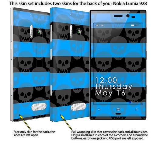 Skull Stripes Blue - Decal Style Skin (fits Nokia Lumia 928)