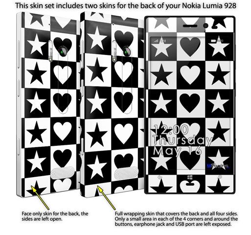Hearts And Stars Black and White - Decal Style Skin (fits Nokia Lumia 928)