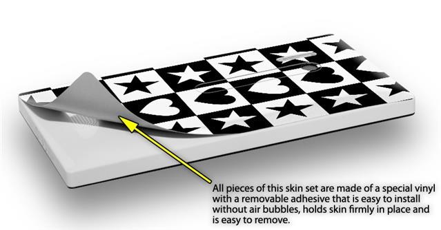 uSkins™ are self adhering vinyl skins that help prevent scratches and look great doing it. Unlike bulky silicon, plastic or metal cases and faceplates, uSkins are designed to be thin and very tough. uSkins are a composite of two layers of commercial grade materials. The bottom layer is a soft, flexible vinyl with a special removable adhesive that is easily positioned, applied without air bubbles, and effortlessly removed without leaving a sticky residue. Next we print the bottom layer with UV protected, fade resistant inks that deliver superb photo quality designs in vibrant colors. Finally we bond a professional grade laminate over the entire skin adding a glossy protective finish.