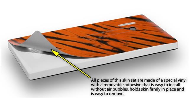 • Decal style vinyl skin covers front, back and side of Nokia Lumia 928 phone.