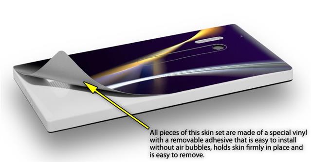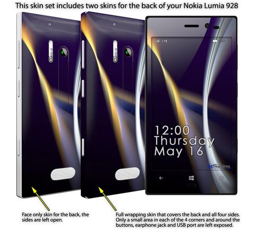 • Decal style vinyl skin covers front, back and side of Nokia Lumia 928 phone.