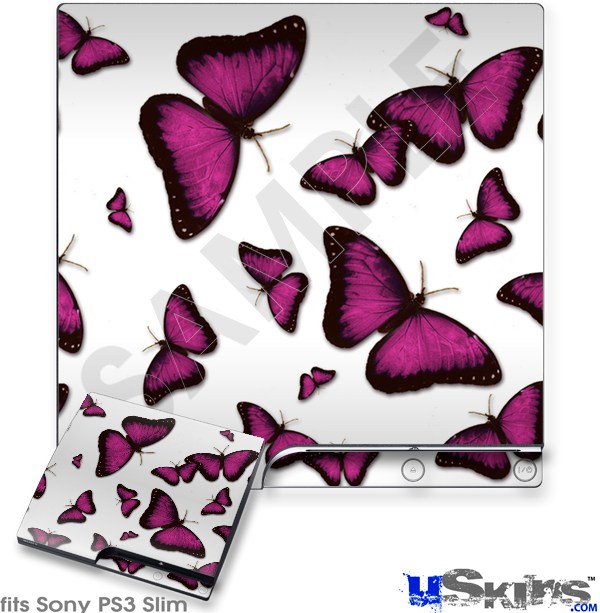 Decal Skin compatible with Sony PS3 Slim Butterflies Purple