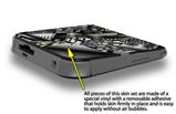 uSkins™ are self adhering vinyl skins that help prevent scratches and look great doing it. Unlike bulky silicon, plastic or metal cases and faceplates, uSkins are designed to be thin and very tough. uSkins are a composite of two layers of commercial grade materials. The bottom layer is a soft, flexible vinyl with a special removable adhesive that is easily positioned, applied without air bubbles. Next we print the bottom layer with UV protected, fade resistant inks that deliver superb photo quality designs in vibrant colors. Finally we bond a professional grade laminate over the entire skin adding a glossy protective finish.