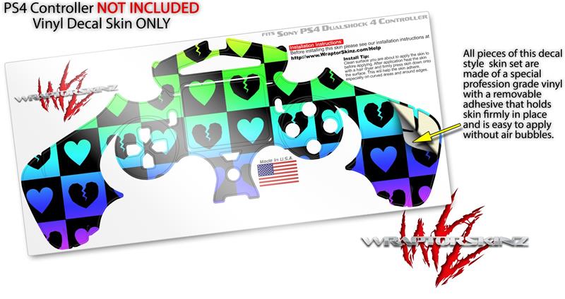 WraptorSkinz Skin compatible with Sony PS4 Dualshock Controller PlayStation 4 Original Slim and Pro Love Heart Checkers Rainbow (CONTROLLER NOT INCLUDED)