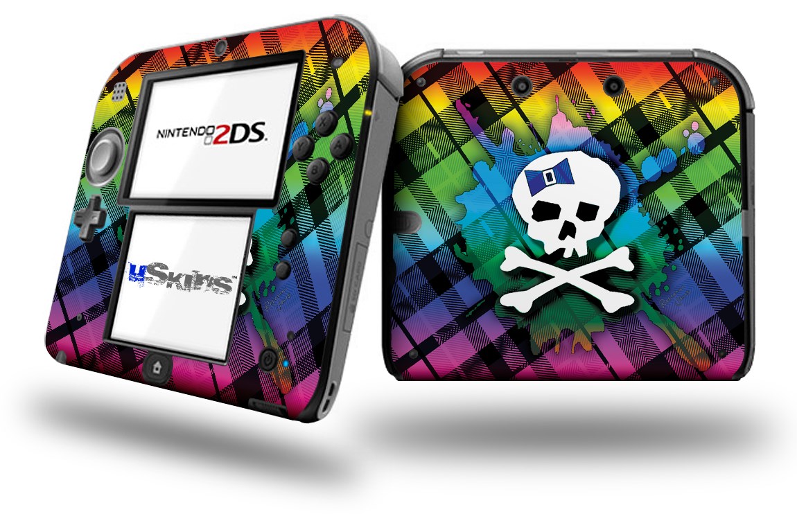 Rainbow Plaid Skull - Decal Style Vinyl Skin fits Nintendo 2DS - 2DS NOT INCLUDED