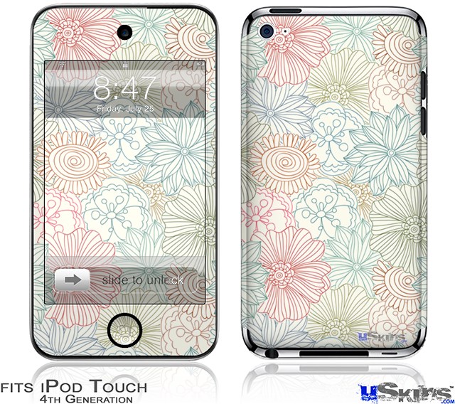 iPod Touch 4G Decal Style Vinyl Skin - Flowers Pattern 02