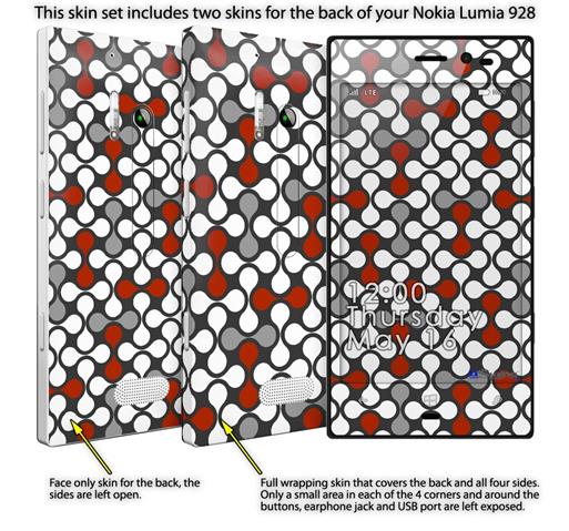 • Decal style vinyl skin covers front, back and side of Nokia Lumia 928 phone.