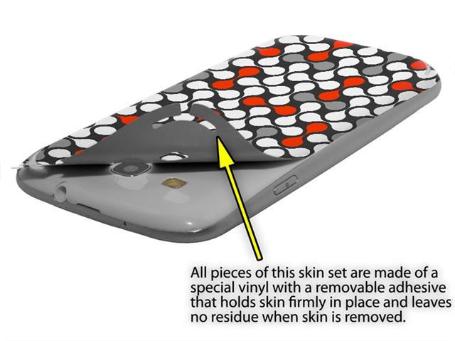 • Decal style vinyl skin covers front and back of Samsung Galaxy S III S3 phone.