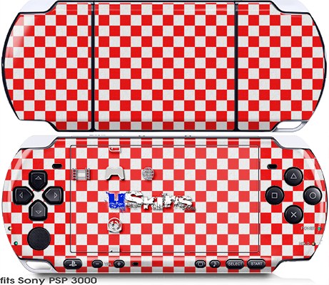 Sony PSP 3000 Skin - Checkered Canvas Red and White