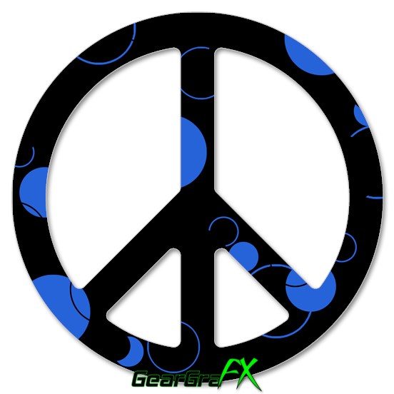 Lots of Dots Blue on Black - Peace Sign Car Window Decal 6 x 6 inches