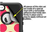 uSkins™ are self adhering vinyl decal style skins and are a great way to add a new look to your existing protective case. uSkins are a composite of two layers of commercial grade materials. The bottom layer is a soft, flexible vinyl with a special removable adhesive that is easily positioned, applied without air bubbles. Next we print the bottom layer with UV protected, fade resistant inks that deliver superb photo quality designs in vibrant colors. Finally we bond a professional grade laminate over the entire skin adding a glossy protective finish.