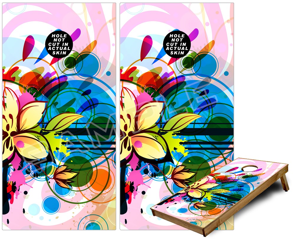 Cornhole Game Board Vinyl Skin Wrap Kit - Floral Splash fits 24x48 game boards (GAMEBOARDS NOT INCLUDED)