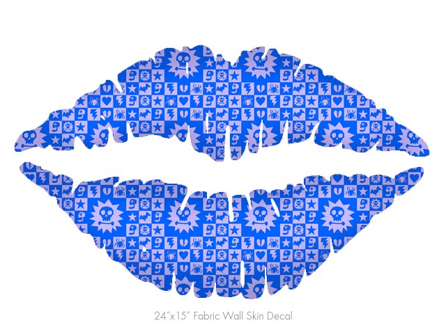 Gothic Punk Pattern Blue - Kissing Lips Fabric Wall Skin Decal measures 24x15 inches