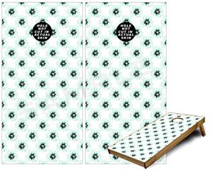 WraptorSkinz corn hole wraps stick to Painted surfaces and even Raw Wood! Automotive vinyl does not cut it on bag toss game boards. We use professional grade, 7 year vinyl with specially formulated adhesive that can be applied directly to raw wood boards. Then we print with the UV protected inks for bright, vivid colors that resist sun fading.