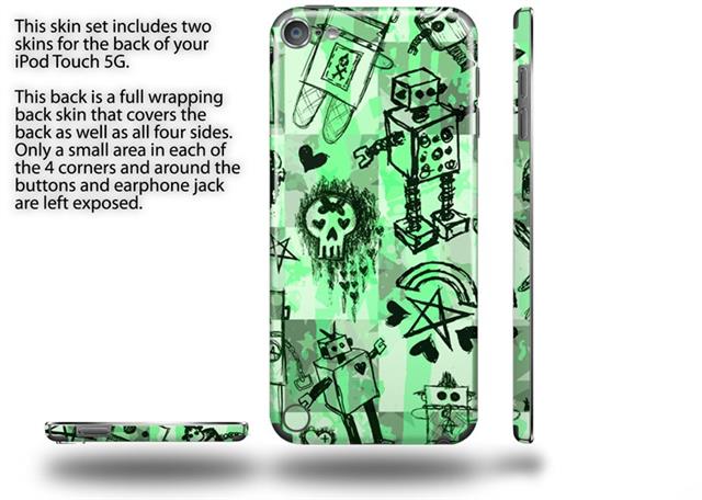 Scene Kid Sketches Green Decal Style Vinyl Skin - fits Apple iPod Touch 5G (IPOD NOT INCLUDED)