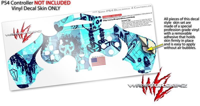 WraptorSkinz Skin compatible with Sony PS4 Dualshock Controller PlayStation 4 Original Slim and Pro Scene Kid Sketches Blue (CONTROLLER NOT INCLUDED)