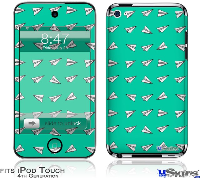 iPod Touch 4G Decal Style Vinyl Skin - Paper Planes Turquoise