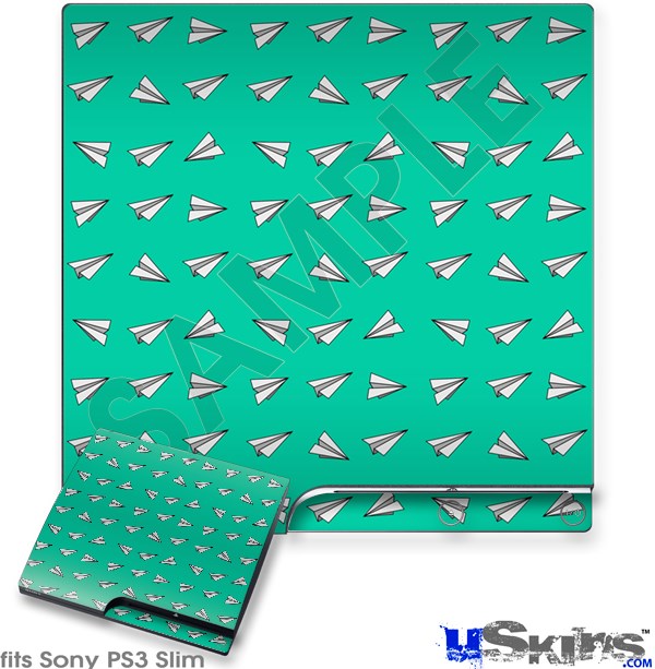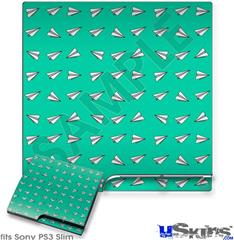Decal Skin compatible with Sony PS3 Slim Paper Planes Turquoise