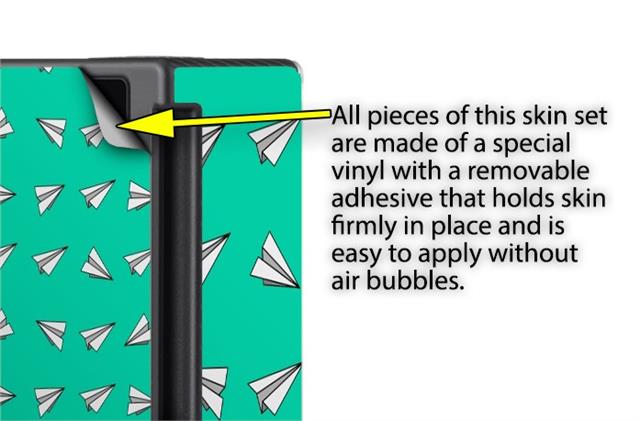 WraptoSkinz™ skins are superb photo quality designs and vibrant colors printed with special Eco-Friendly, fade resistant inks. Our skins are self-adhering flexible vinyl skins that helps prevent scratches. Made of composite, multi-layered commercial grade materials. The bottom layer is made with a special removable adhesive that is easily positioned and applied without air bubbles. We print your design on the bottom layer then bond a professional grade laminate over the entire skin adding a glossy protective finish.