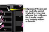 WraptoSkinz™ skins are superb photo quality designs and vibrant colors printed with special Eco-Friendly, fade resistant inks. Our skins are self-adhering flexible vinyl skins that helps prevent scratches. Made of composite, multi-layered commercial grade materials. The bottom layer is made with a special removable adhesive that is easily positioned and applied without air bubbles. We print your design on the bottom layer then bond a professional grade laminate over the entire skin adding a glossy protective finish.