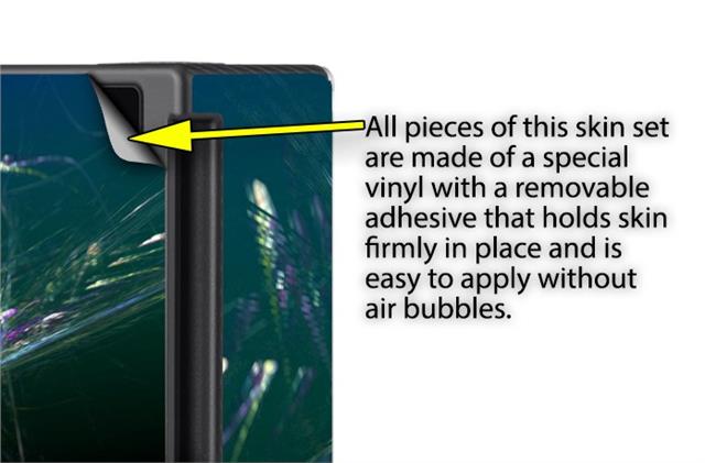 WraptoSkinz™ skins are superb photo quality designs and vibrant colors printed with special Eco-Friendly, fade resistant inks. Our skins are self-adhering flexible vinyl skins that helps prevent scratches. Made of composite, multi-layered commercial grade materials. The bottom layer is made with a special removable adhesive that is easily positioned and applied without air bubbles. We print your design on the bottom layer then bond a professional grade laminate over the entire skin adding a glossy protective finish.