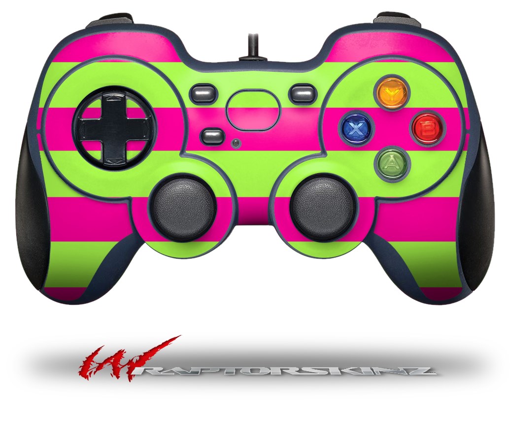 Psycho Stripes Neon Green and Hot Pink - Decal Style Skin fits Logitech F310 Gamepad Controller (CONTROLLER SOLD SEPARATELY)
