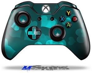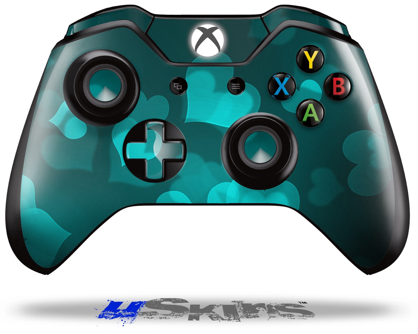 Decal Skin Wrap fits Microsoft XBOX One Wireless Controller Bokeh Hearts Neon Teal
