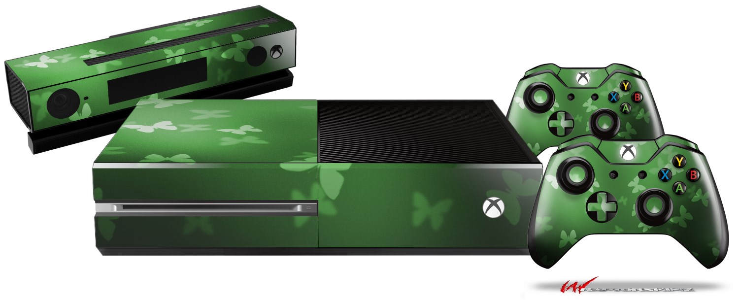Bokeh Butterflies Green - Holiday Bundle Decal Style Skin fits XBOX One Console Original, Kinect and 2 Controllers (XBOX SYSTEM NOT INCLUDED)