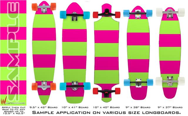 Psycho Stripes Neon Green and Hot Pink - Decal Style Vinyl Wrap Skin fits Longboard Skateboards up to 10"x42" (LONGBOARD NOT INCLUDED)