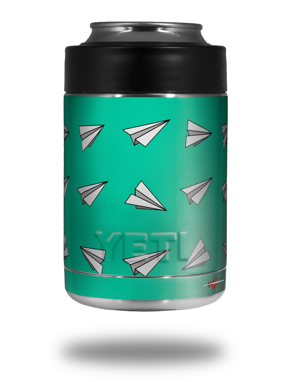 Skin Decal Wrap for Yeti Colster, Ozark Trail and RTIC Can Coolers - Paper Planes Turquoise (COOLER NOT INCLUDED)