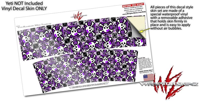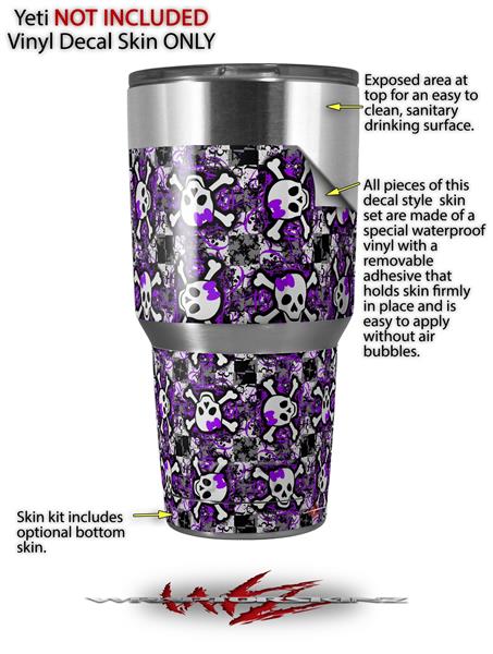 Skin Decal Wrap for Yeti Tumbler Rambler 30 oz Splatter Girly Skull Purple (TUMBLER NOT INCLUDED)