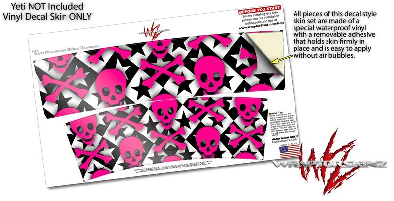 Skin Decal Wrap for Yeti Tumbler Rambler 30 oz Pink Skulls and Stars (TUMBLER NOT INCLUDED)