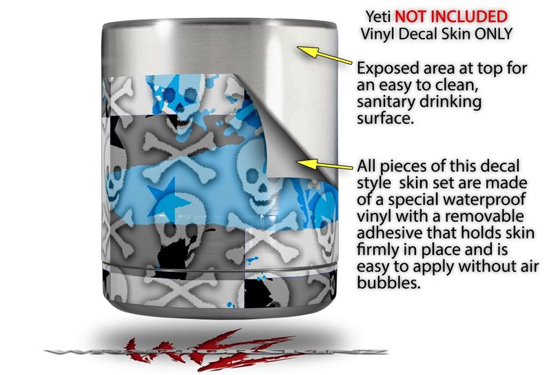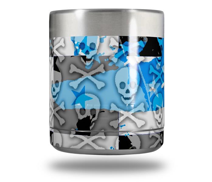 Skin Decal Wrap for Yeti Rambler Lowball - Checker Skull Splatter Blue