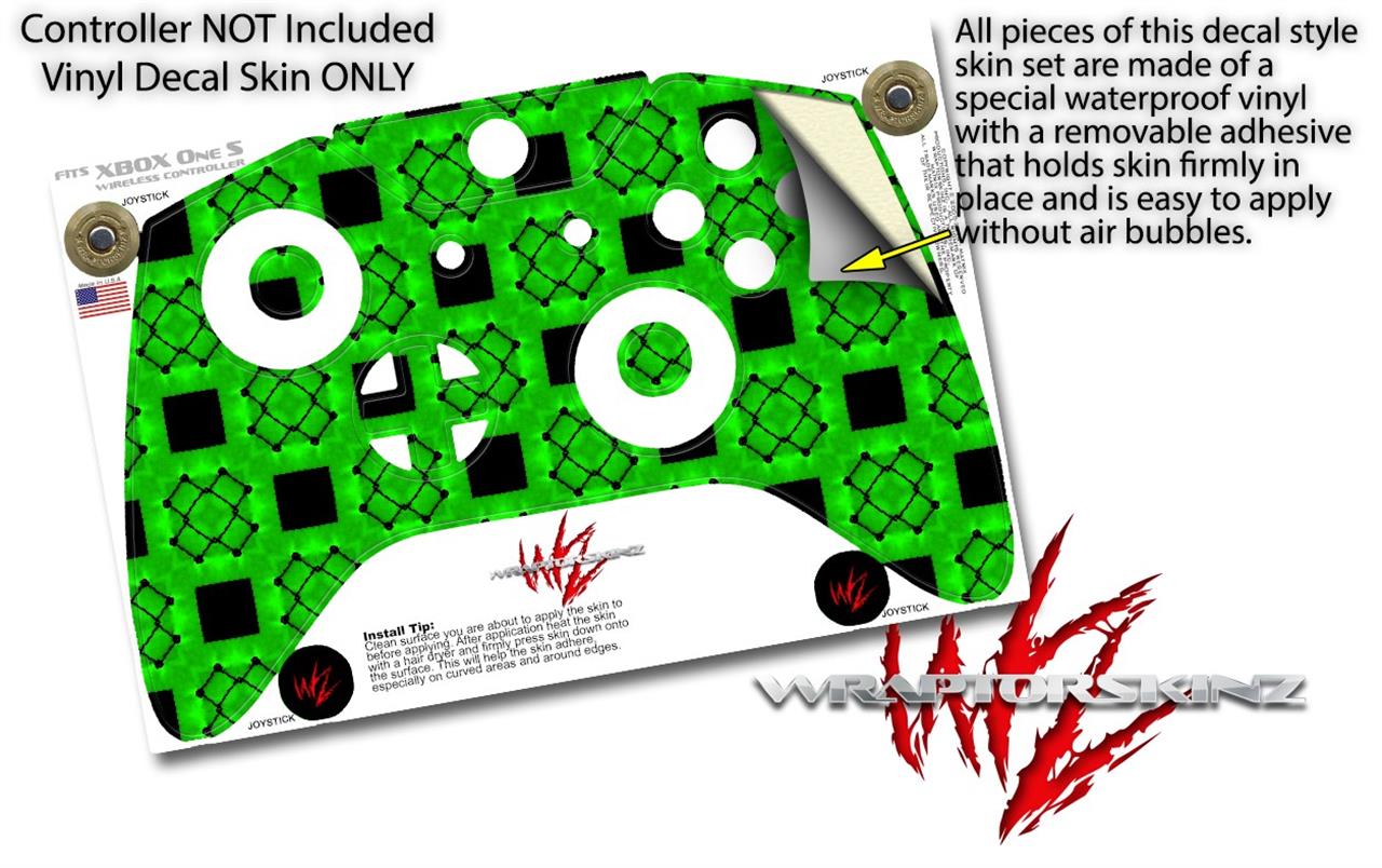 WraptorSkinz Decal Skin Wrap Set works with 2016 and newer XBOX One S / X Controller Criss Cross Green (CONTROLLER NOT INCLUDED)