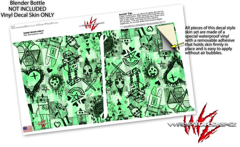 Decal Style Skin Wrap works with Blender Bottle 22oz ProStak Scene Kid Sketches Green (BOTTLE NOT INCLUDED)