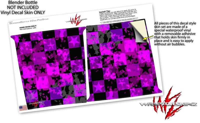 Decal Style Skin Wrap works with Blender Bottle 22oz ProStak Purple Star Checkerboard (BOTTLE NOT INCLUDED)