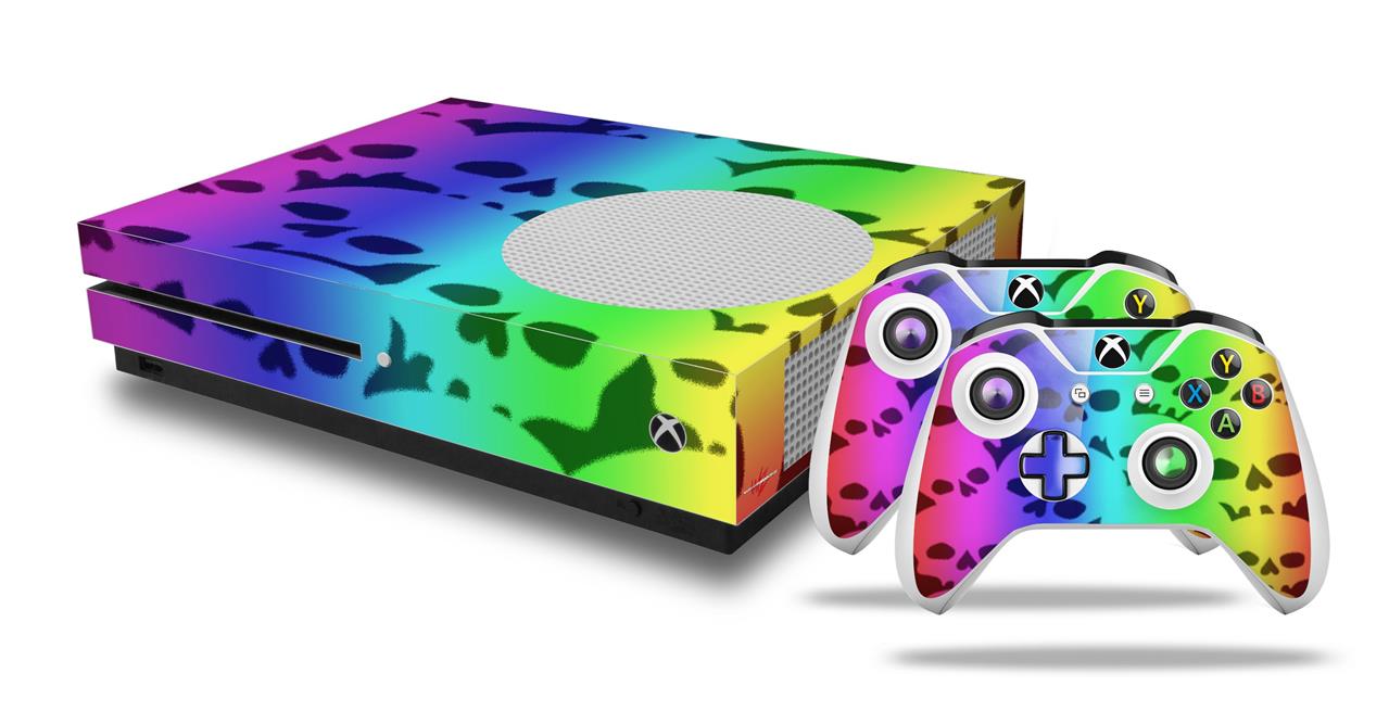 WraptorSkinz Decal Skin Wrap Set works with 2016 and newer XBOX One S Console and 2 Controllers Rainbow Skull Collection
