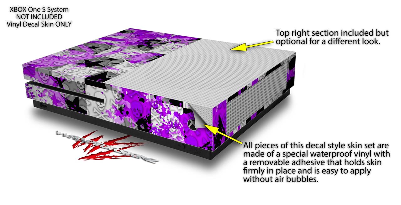 WraptorSkinz Decal Skin Wrap Set works with 2016 and newer XBOX One S Console and 2 Controllers Purple Checker Skull Splatter