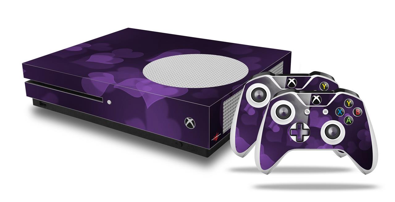 WraptorSkinz Decal Skin Wrap Set works with 2016 and newer XBOX One S Console and 2 Controllers Bokeh Hearts Purple