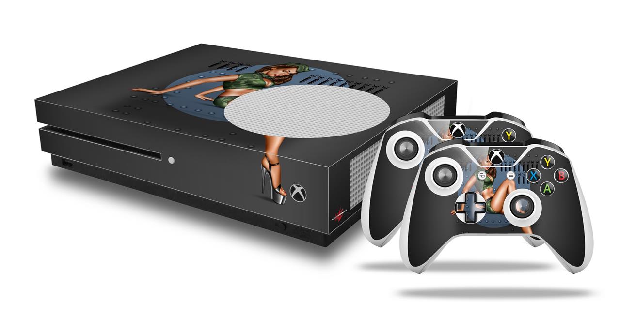 WraptorSkinz Decal Skin Wrap Set works with 2016 and newer XBOX One S Console and 2 Controllers Bomber Pin Up Girl