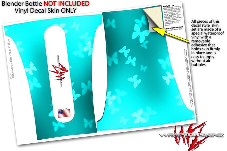 Decal Style Skin Wrap works with Blender Bottle 28oz Bokeh Butterflies Neon Teal (BOTTLE NOT INCLUDED)