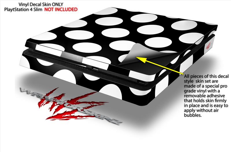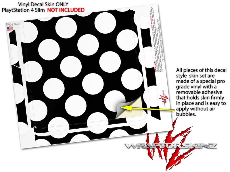 Vinyl Decal Skin Wrap compatible with Sony PlayStation 4 Slim Console Kearas Polka Dots White On Black (PS4 NOT INCLUDED)