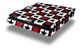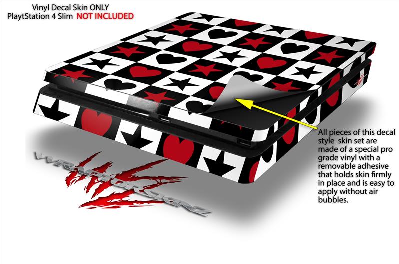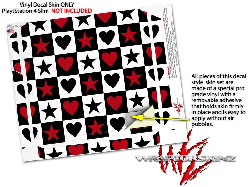 Vinyl Decal Skin Wrap compatible with Sony PlayStation 4 Slim Console Hearts and Stars Red (PS4 NOT INCLUDED)