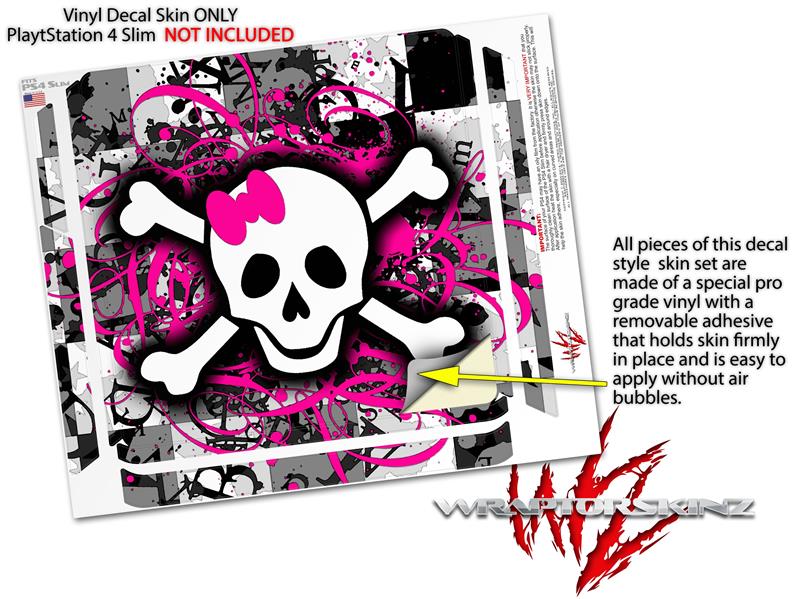Vinyl Decal Skin Wrap compatible with Sony PlayStation 4 Slim Console Splatter Girly Skull (PS4 NOT INCLUDED)