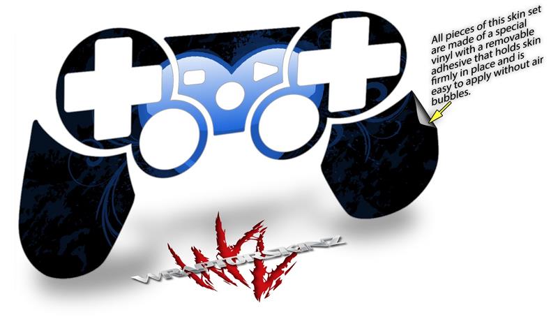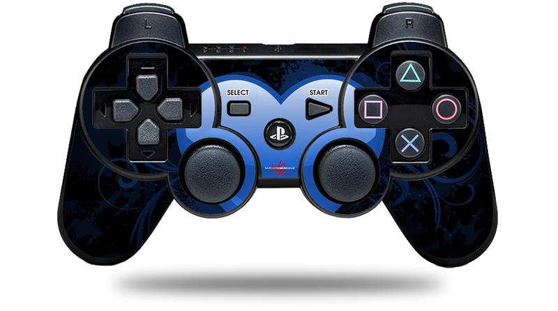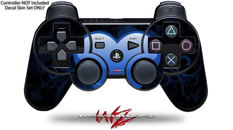 Sony PS3 Controller Decal Style Skin - Glass Heart Grunge Blue (CONTROLLER NOT INCLUDED)