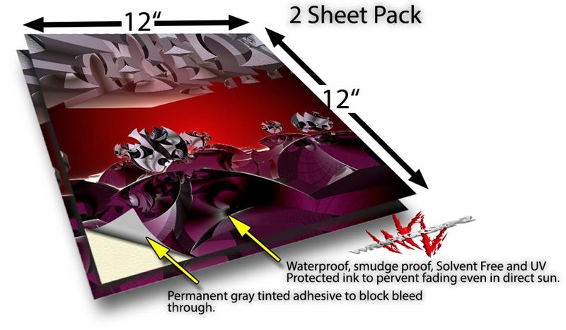 WraptoSkinz™ skin vinyl craft sheets are printed using superb photo quality designs and vibrant colors printed with special UV Protected fade resistant inks that last even in direct sun for years. Unlike other brands our inks are NOT solvent based. WraptorSkinz are a manufactured from professional grade 3mill vinyl. These sheets are waterproof, the designs will not run or smear even if submerged in water.