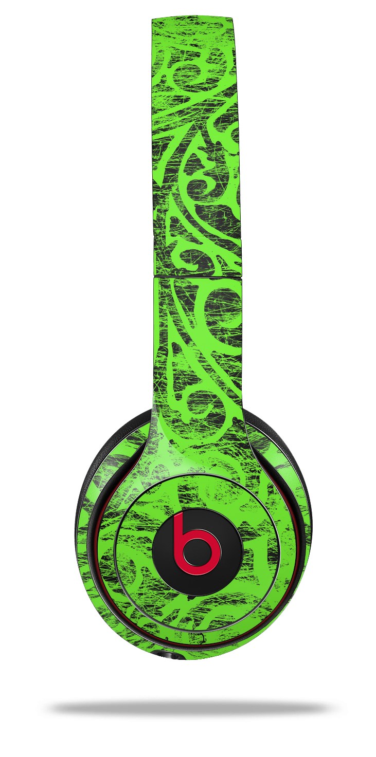 WraptorSkinz Skin Decal Wrap compatible with Beats Solo 2 and Solo 3 Wireless Headphones Folder Doodles Neon Green (HEADPHONES NOT INCLUDED)