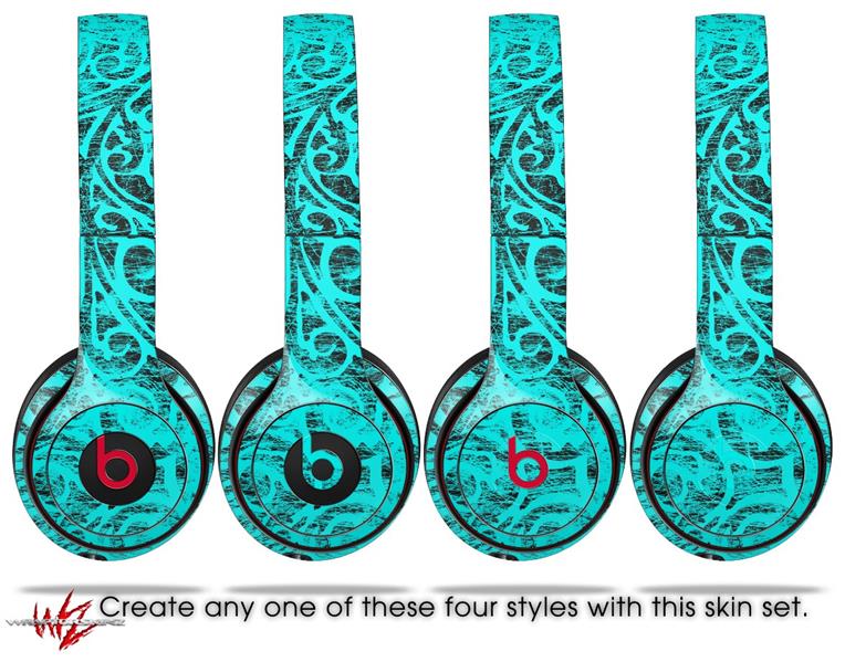 WraptorSkinz Skin Decal Wrap compatible with Beats Solo 2 and Solo 3 Wireless Headphones Folder Doodles Neon Teal (HEADPHONES NOT INCLUDED)
